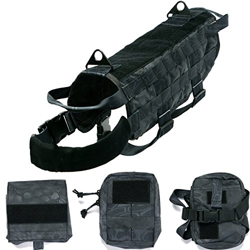 You can read main features below to know more about Tactical Dog Training Molle Vest Harness with 3 Detachable Pouches Kryptek Typhon XL.