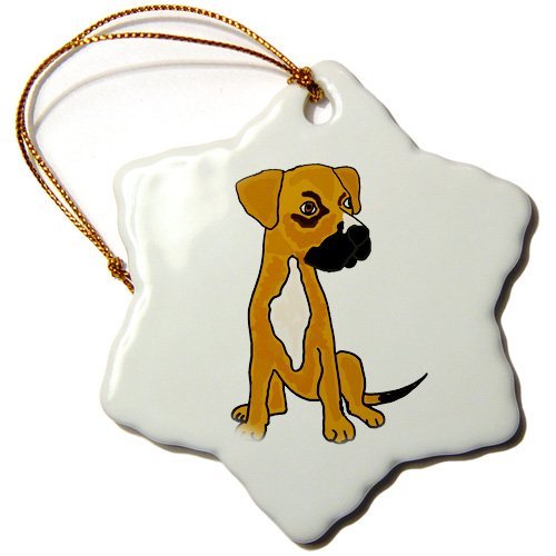 The Wild Bramble 3-Inch Porcelain Snowflake Decorative Hanging Ornament, Funny Boxer Mix Rescue Puppy Dog , it you must have for boxer mix puppies.